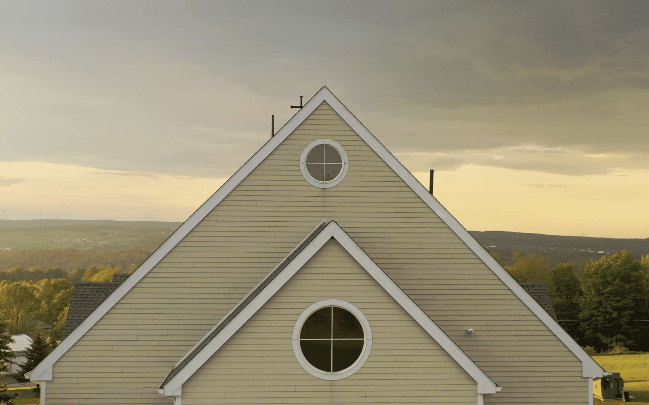 The design off the new St. Ann Church has several windows behind the altar, which gives the congregation a view of the Casselman Valley. The crucifix over the altar is an original hand-painted icon depicting Jesus with renderings of the old St Ann and St. Stephen churches and a scripture quote “By His Wounds We Are Healed”. The statue of St. Ann that sits at the front of the church is the original statue that was refurbished after the fire.
